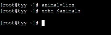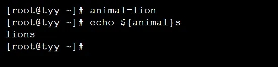 在标准输出中不会打印任何内容,因为 Bash 不理解变量$animals。但是,我们可以通过如下方式使用参数替换方法成功调用我们的$animals变量: