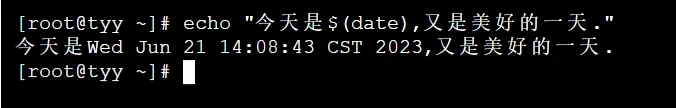 上述执行可以用以下方式解释。首先,执行 date 命令并将其输出作为参数包含在 echo 命令中。