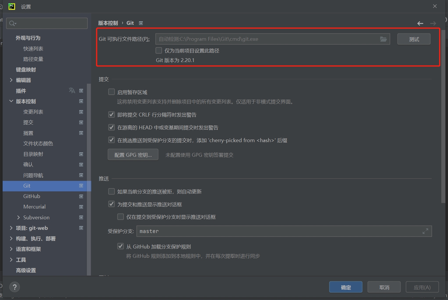 打开python的设置 安装好后python会自动检测到 如果检测不到就手动写git.exe的路径