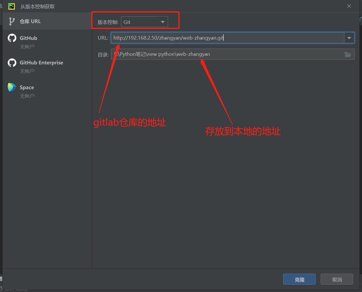 配置gitlab地址与克隆到本地的目录