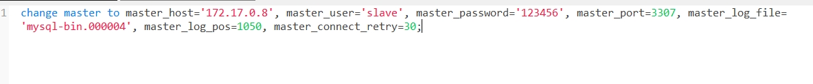 master_log_pos:指定从数据库从哪个位置开始复制数据,通过查看主数据的状态,获取Position参数;