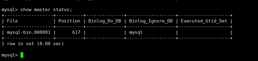 首先连接到主数据库的mysql客户端,查看主数据库状态: