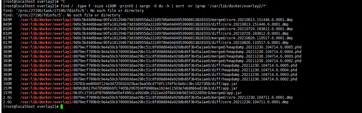 ex:我这里是查找 /var/lib/docker/overlay2/* 开头的且大于100m的文件